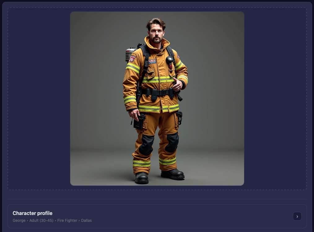 Characters maintain their appearance throughout your entire story, creating professional continuity.