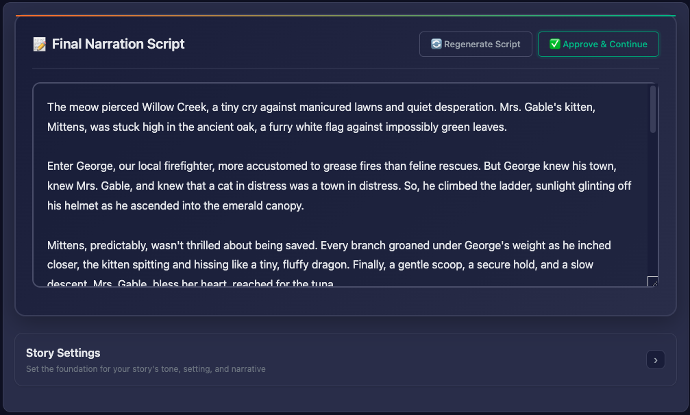 Edit scripts, regenerate scenes, adjust timing. You're always in control of your story.