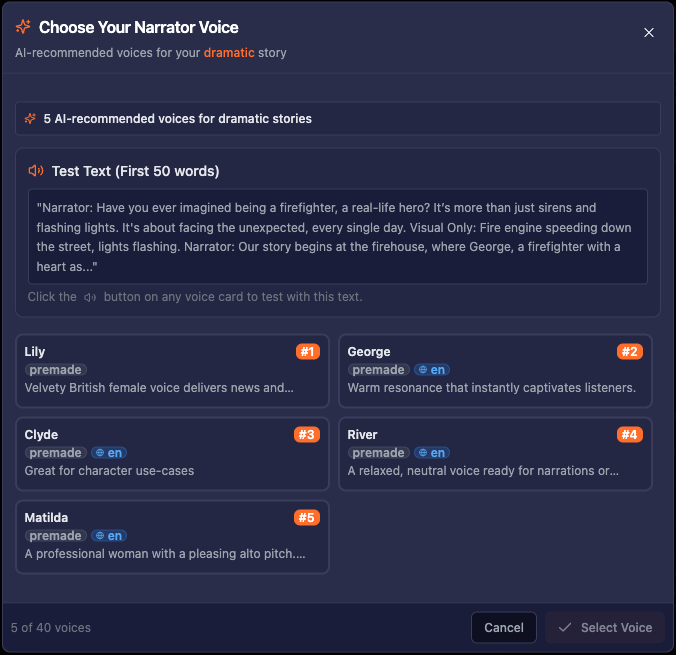 Professional narration with ElevenLabs voices
