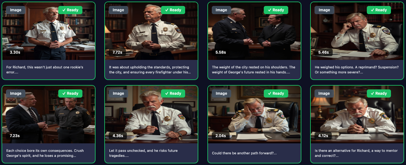 The AI understands storytelling. It knows when to show emotion, action, or atmosphere.